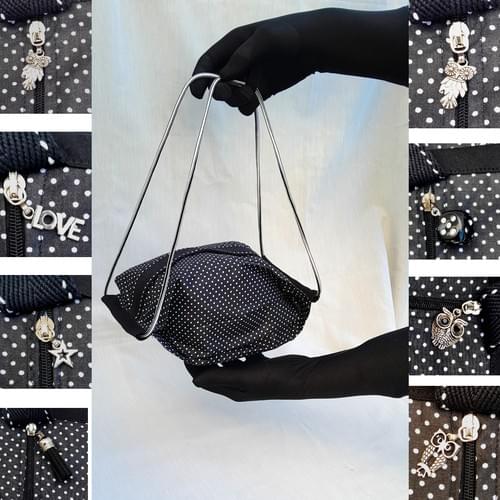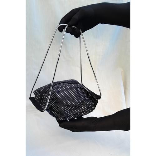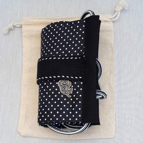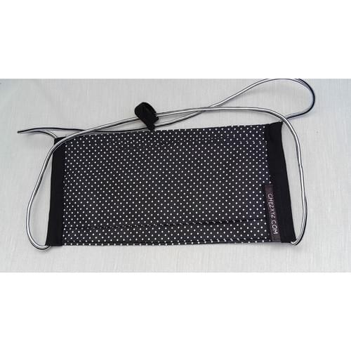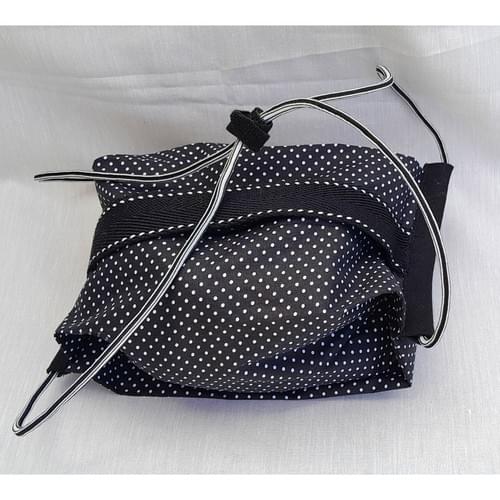 Sac pliable en tissu de coton noir à petits pois.